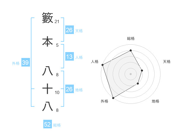 籔本 八十八さんの外格は39画の5点!