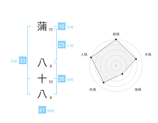 蒲 八十八さんを姓名の画数から五運を鑑定