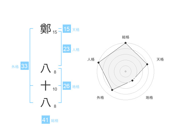 鄭 八十八さんの外格は33画の4点!
