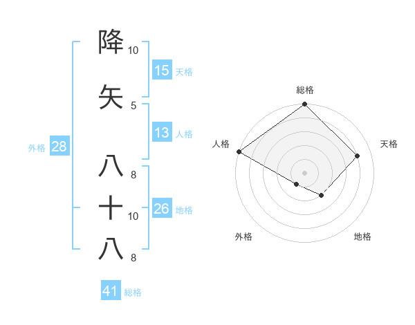 降矢 八十八さんの総格は41画の5点!