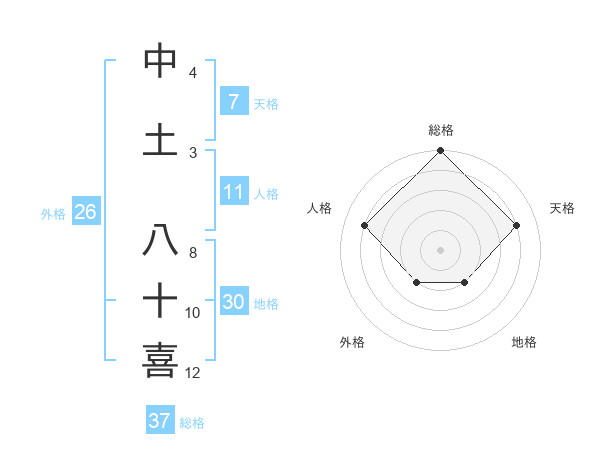 中土 八十喜さんを姓名の画数から五運を鑑定