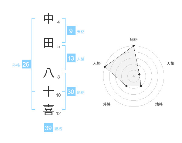 中田 八十喜さんを姓名の画数から五運を鑑定