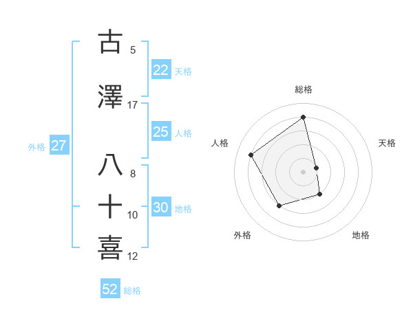古澤 八十喜さんの総格は52画の4点!