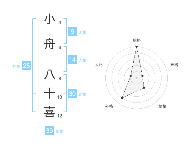 小舟 八十喜さんを姓名の画数から五運を鑑定