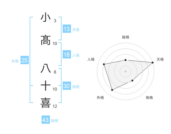 小髙 八十喜さんの天格は13画の5点!