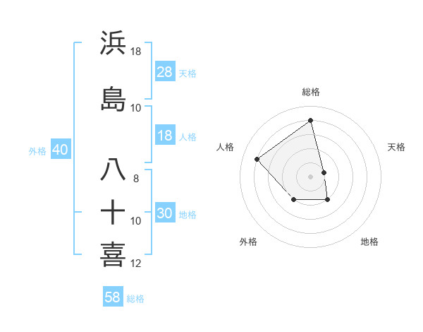 浜島 八十喜さんを姓名の画数から五運を鑑定