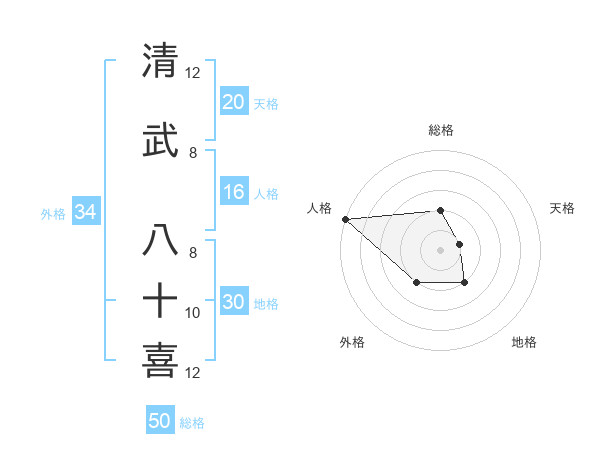 清武 八十喜さんの天格は20画の1点!