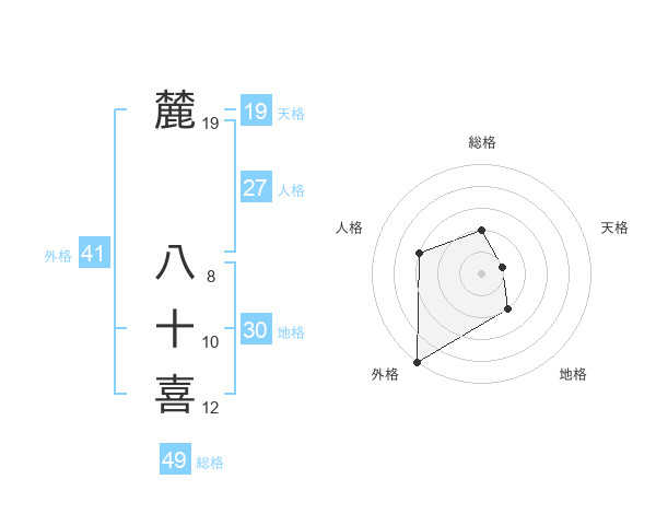 麓 八十喜さんの外格は41画の5点!