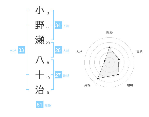 小野瀬 八十治さんを姓名の画数から五運を鑑定