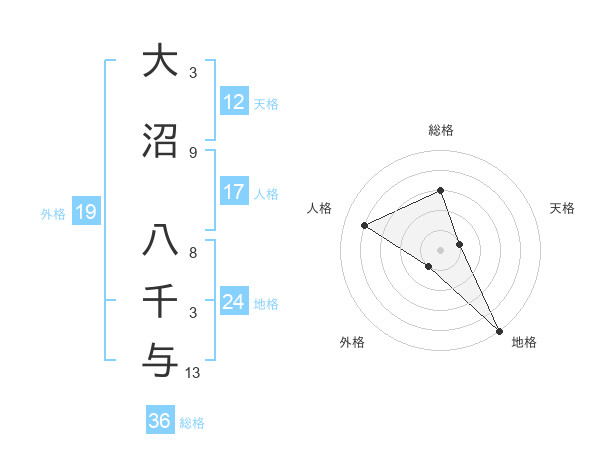 大沼 八千与さんを姓名の画数から五運を鑑定