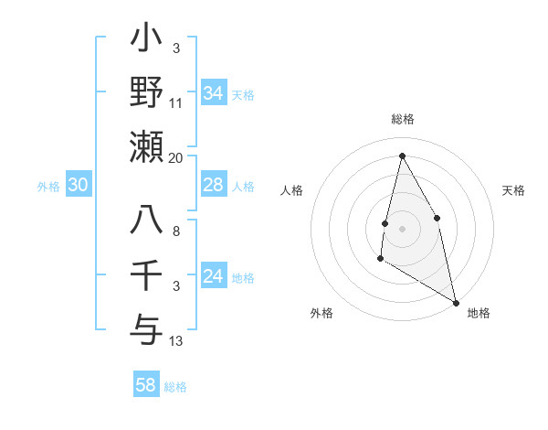 小野瀬 八千与さんを姓名の画数から五運を鑑定