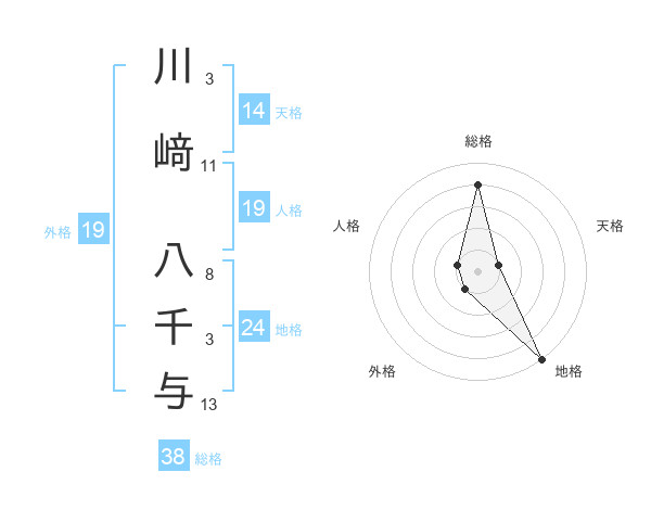 川﨑 八千与さんの総格は38画の4点!