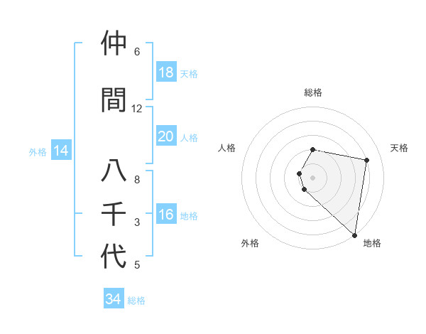 仲間 八千代さんを姓名の画数から五運を鑑定
