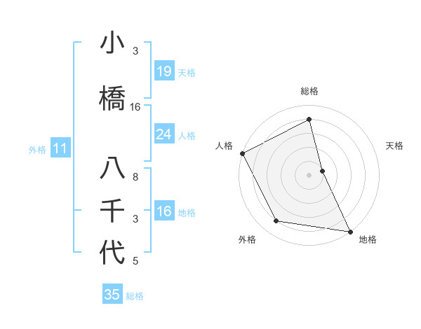小橋 八千代さんを姓名の画数から五運を鑑定