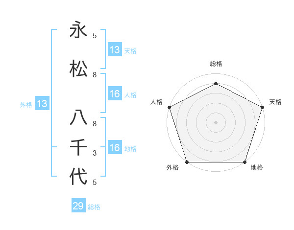 永松 八千代さんの天格は13画の5点!
