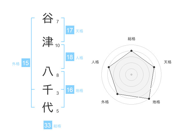 谷津 八千代さんを姓名の画数から五運を鑑定