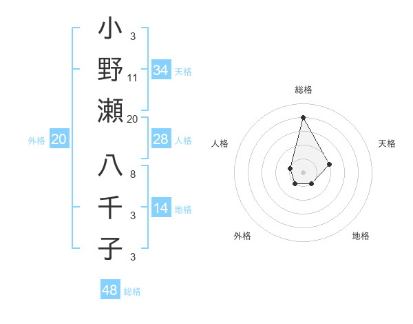 小野瀬 八千子さんを姓名の画数から五運を鑑定
