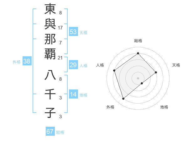 東與那覇 八千子さんを姓名の画数から五運を鑑定