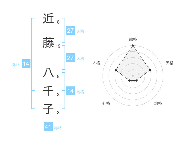 近藤 八千子さんの総格は41画の5点!