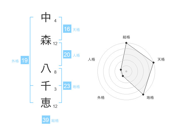 中森 八千恵さんを姓名の画数から五運を鑑定