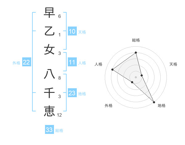 早乙女 八千恵さんを姓名の画数から五運を鑑定