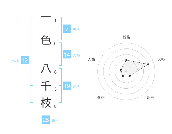 一色 八千枝さんを姓名の画数から五運を鑑定
