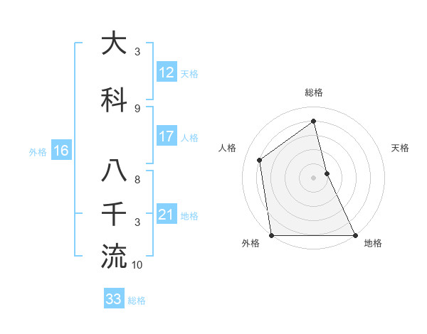 大科 八千流さんの地格は21画の5点!