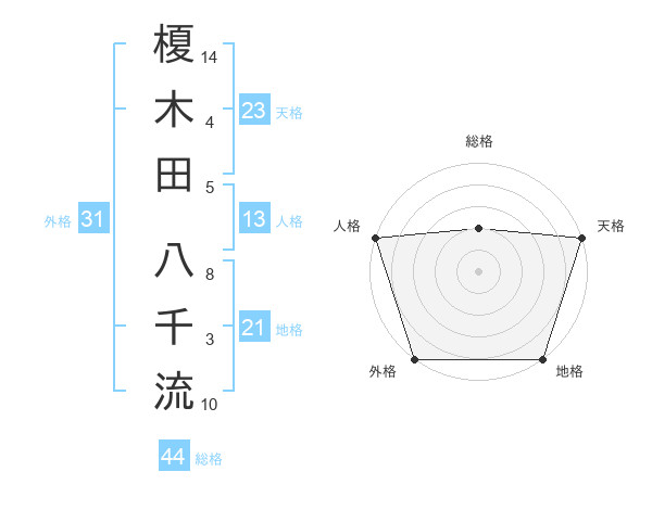 榎木田 八千流さんの外格は31画の5点
