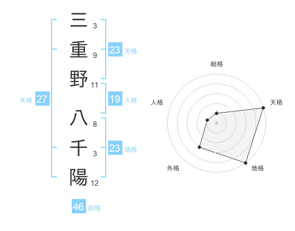 三重野 八千陽さんを姓名の画数から五運を鑑定