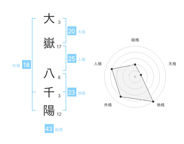 大嶽 八千陽さんを姓名の画数から五運を鑑定