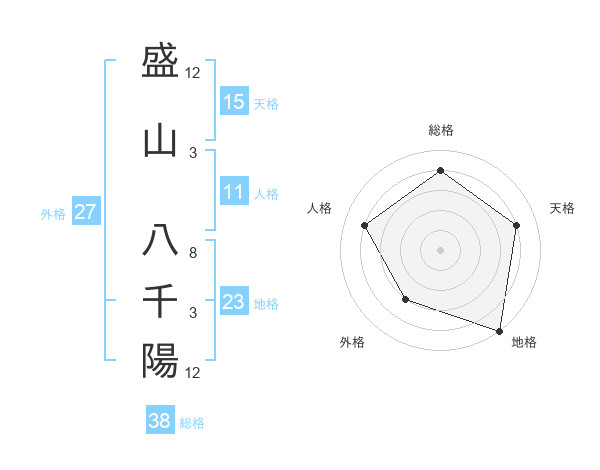 盛山 八千陽さんを姓名の画数から五運を鑑定