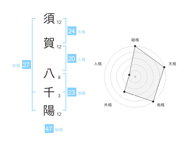 須賀 八千陽さんを姓名の画数から五運を鑑定