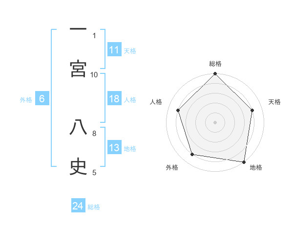 一宮 八史さんの総格は24画の5点!