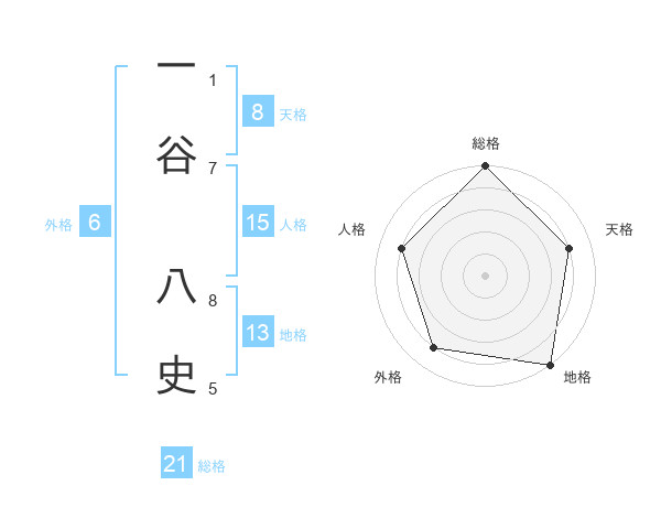 一谷 八史さんの総格は21画の5点!