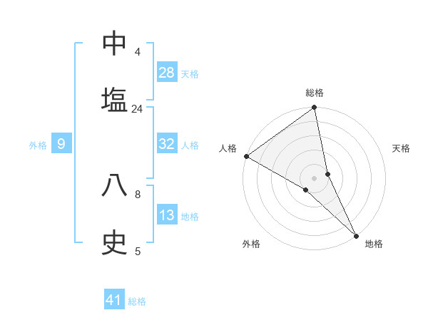中塩 八史さんの総格は41画の5点!