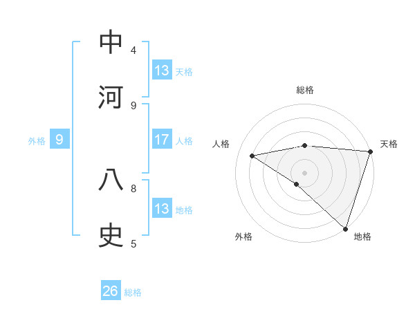 中河 八史さんの天格は13画の5点!