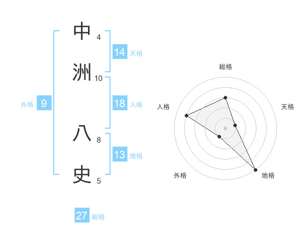 中洲 八史さんの地格は13画の5点!