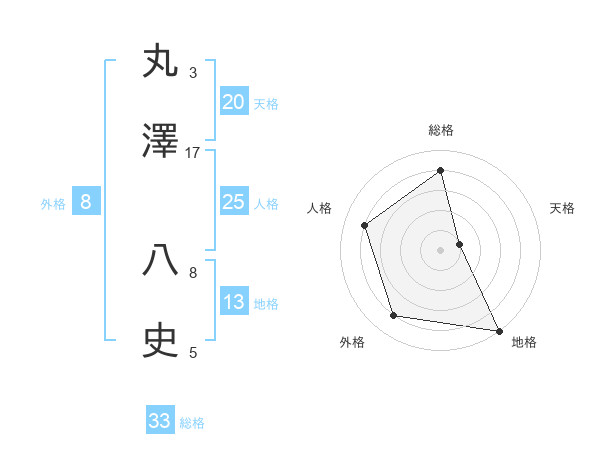 丸澤 八史さんの天格は20画の1点!