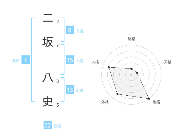 二坂 八史さんの地格は13画の5点!
