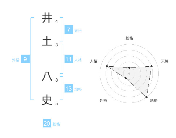井土 八史さんの地格は13画の5点!