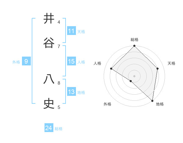 井谷 八史さんの総格は24画の5点!