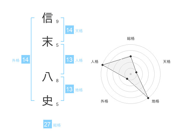 信末 八史さんの地格は13画の5点!
