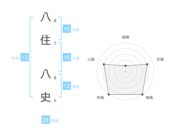 八住 八史さんの地格は13画の5点!