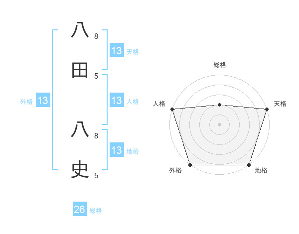 八田 八史さんの天格は13画の5点!