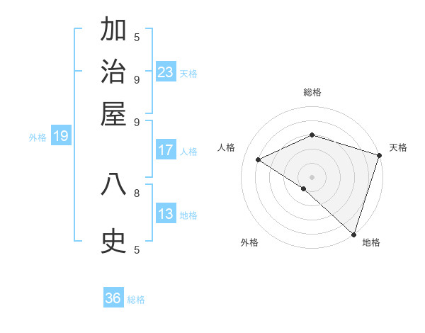加治屋 八史さんを姓名の画数から五運を鑑定