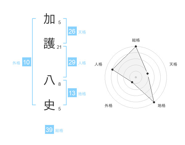 加護 八史さんの地格は13画の5点!
