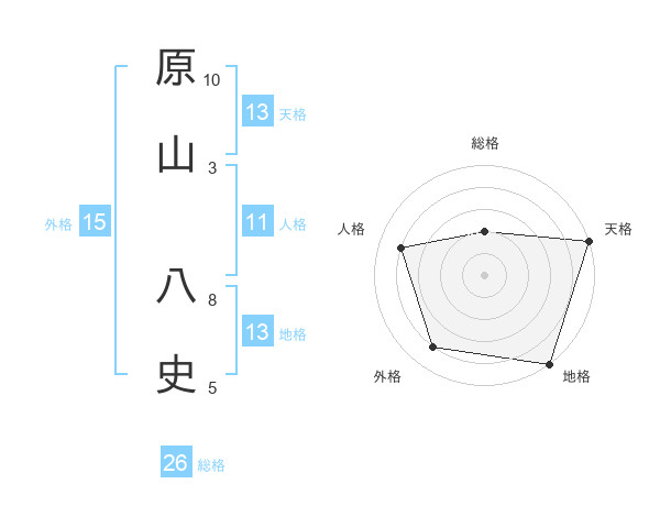 原山 八史さんの天格は13画の5点!