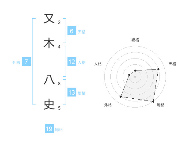 又木 八史さんの天格は6画の4点!