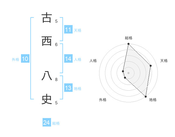 古西 八史さんの天格は11画の4点!
