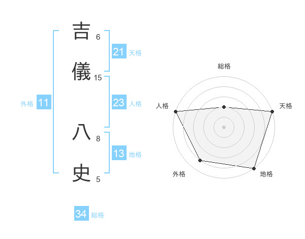 吉儀 八史さんの天格は21画の5点!